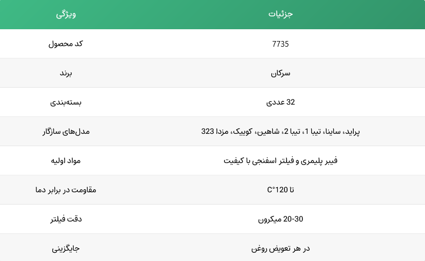 ویژگیهای کلیدی فیلتر روغن سرکان کد 7735
